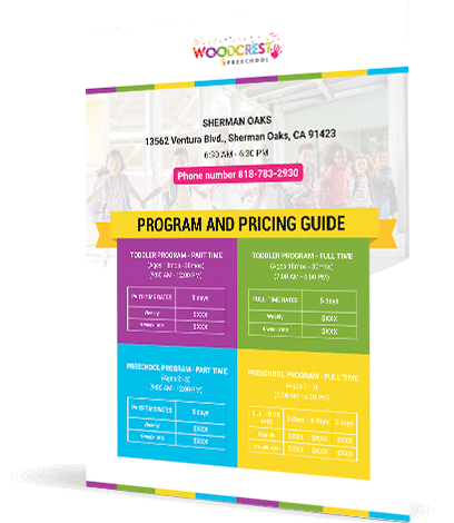 Thank you for your interest in Woodcrest Preschool in Sherman Oaks located at 13562 Ventura Boulevard. Our Sherman Oaks center is conveniently located for families living near Studio City, Van Nuys, and Valley Village. Our Sherman Oaks Preschool provides programming for Toddlers (ages 18 months), Preschoolers (Ages 2-5) and Private Kindergarten(free bus transportation to our private school in Tarzana). If you are looking for a loving and nurturing center in Sherman Oaks that provides foundational academic skills and 21 century learning that includes communication, collaboration, and imagination, Woodcrest Preschool is the right place for your family.
